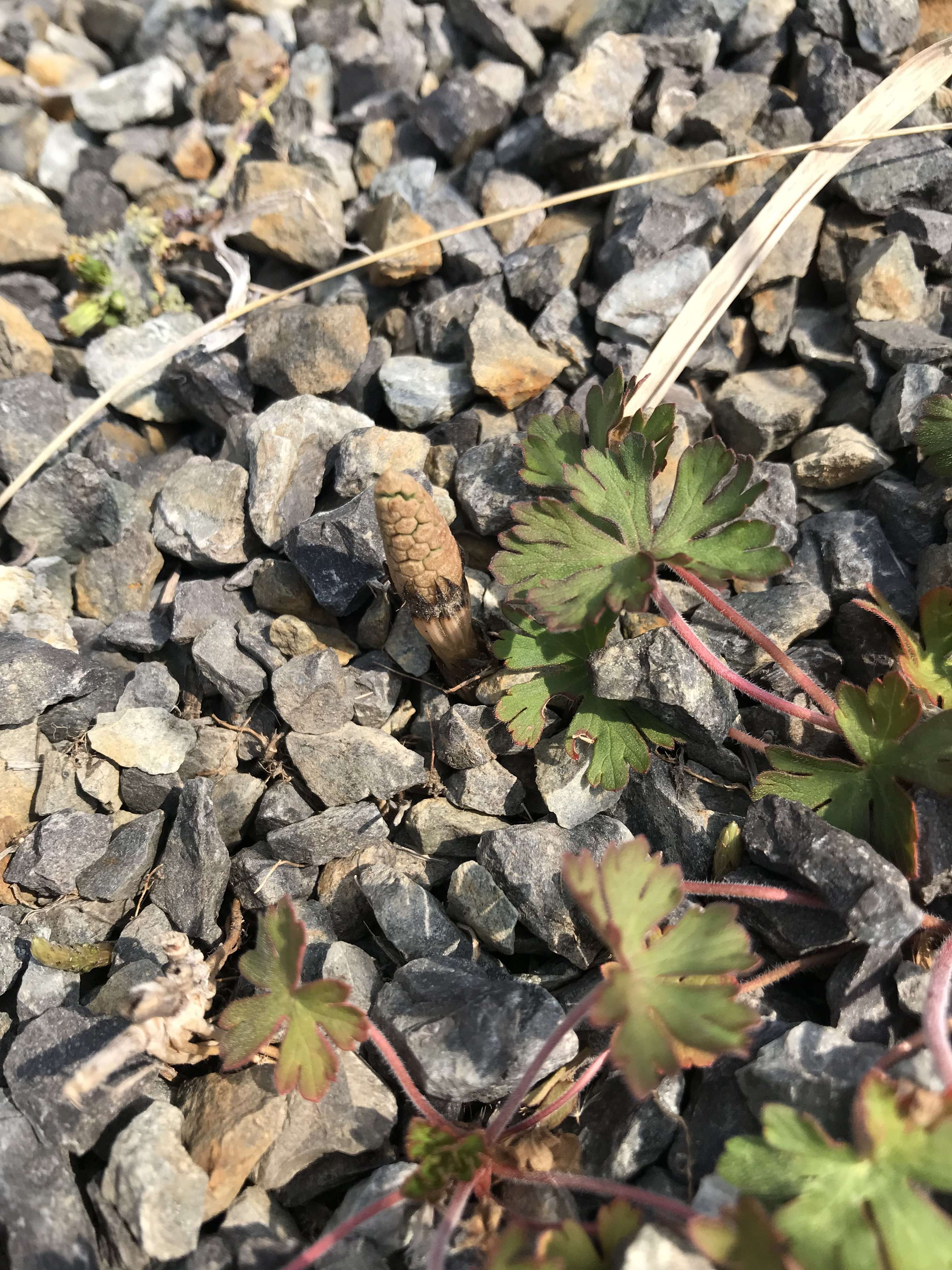 少し見にくいですが頑張って砕石に負けず生えてました。